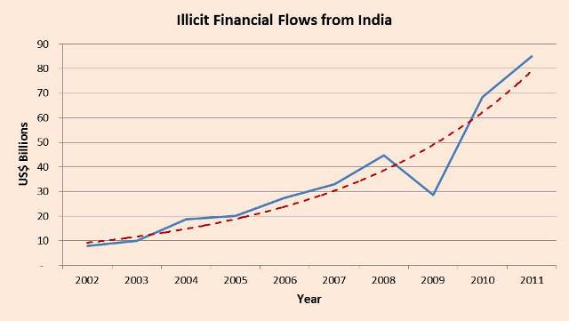Illicit financial flows from India have grown ten-fold in the nine years under consideration. When the GDP growth has been in single digits, these cross-border flows have grown at a CAGR of 30%.