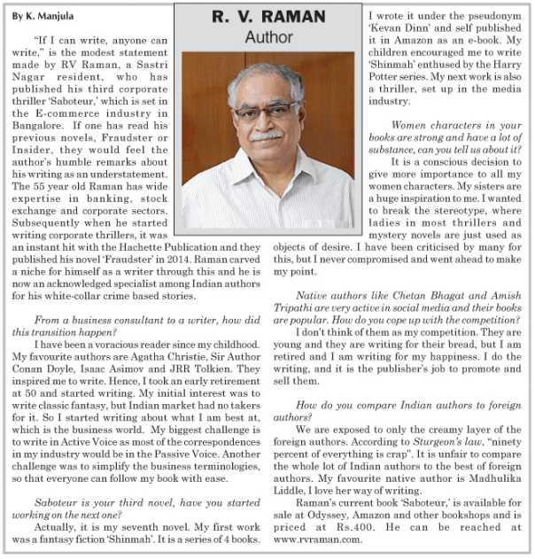 >> “RV Raman has done to me what the likes of Ken Follet, Jeffery Archer, Robert Ludlum do. By far it’s the best thriller by an Indian writer.”